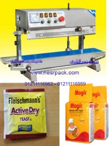 ماكينة لحام أكياس الخميرة البلاستيكية المستمرة العمودية موديل 303 المقدمة من شركة نسر الشرق ماكينات تعبئة وتغليف: