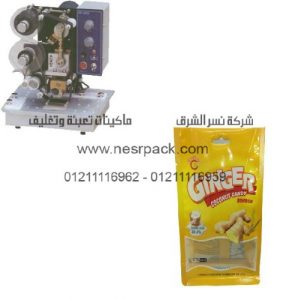 المعايير الفنية والتقنيات الهندسية لماكينة طباعة تاريخ الانتاج وتاريخ الصلاحية علي أكياس حلوي جوز الهند موديل 322 المقدمة من شركة نسر الشرق ماكينات تعبئة وتغليف:…