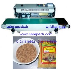 المعايير الفنية والتقنيات الهندسية لماكينة لحام اكياس البرغل والطباعة عليها موديل 301 المقدمة من شركة نسر الشرق ماكينات تعبئة وتغليف: الموديل 301 الجهد الكهربي 220…