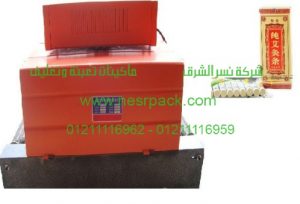المعايير الفنية والتقنيات الهندسية لماكينة شرنكة زجاجات زيت الشيح بفيلم الشرنيــك الحراري موديل 101 المقدمة من شركة نسر الشرق ماكينات تعبئة وتغليف الموديل 101 الجهد…