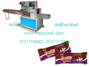 المعايير الفنية والتقنيات الهندسية لماكينة تغليف الشيكولاتة فلوباك الاتوماتيكية ذات وسادة والتي يوجد بها رول التغليف من اسفل المقدمة من شركة نسر الشرق ماكينات تعبئة…